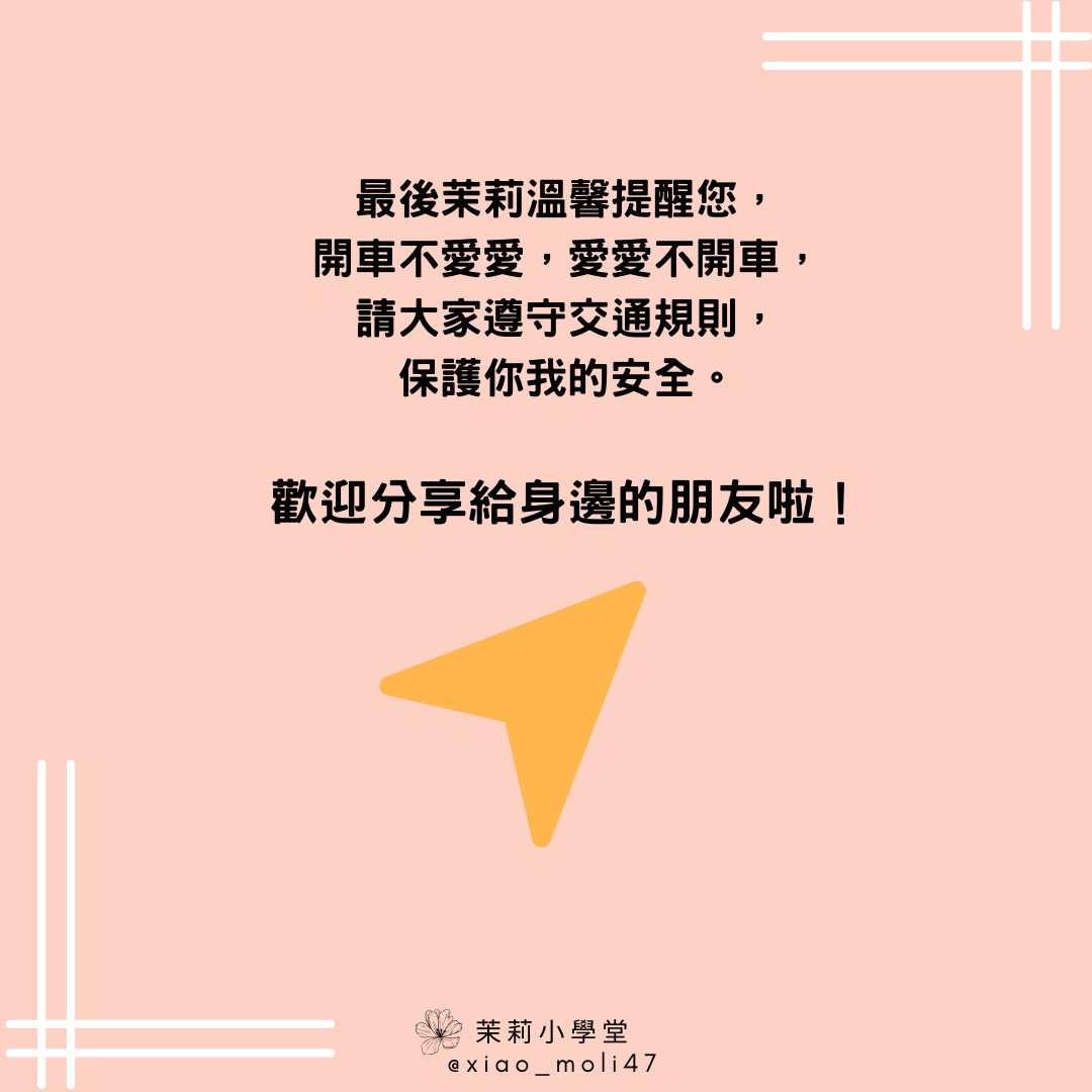 最後茉莉溫馨提醒您,開車不愛愛,愛愛不開車,請大家遵守交通規則,保護你我的安全。